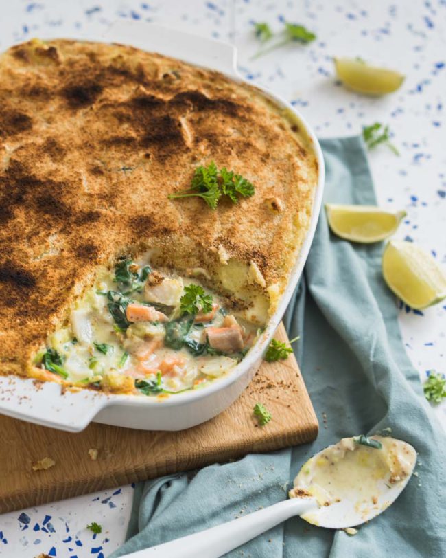 Fish Pie – Geen taart, maar wel heel lekker deze romige ovenschotel met vis, groenten en puree. Het ideale Family Food!