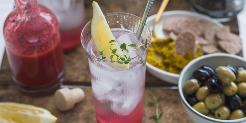 - Doe voor de mocktail 2 el rode vruchten siroop en 1 el citroensap in een glas